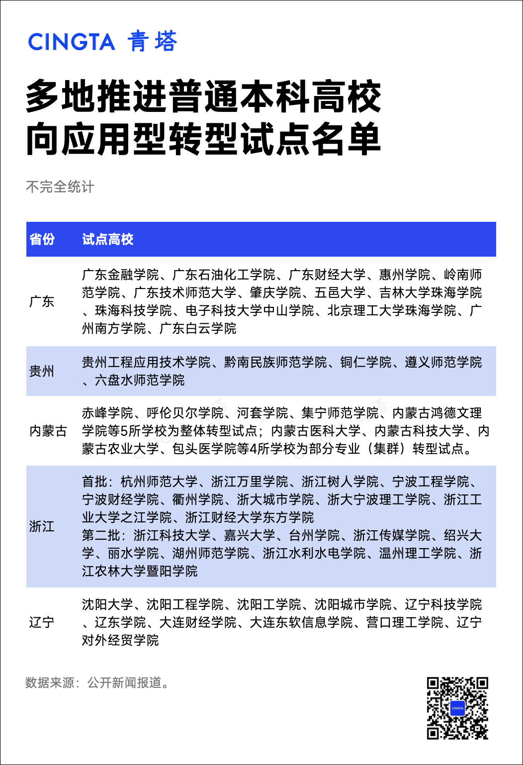 响应国家引导部分地方普通高校向应用型转变,多地首先纷纷遴选本科高校进行试点。
